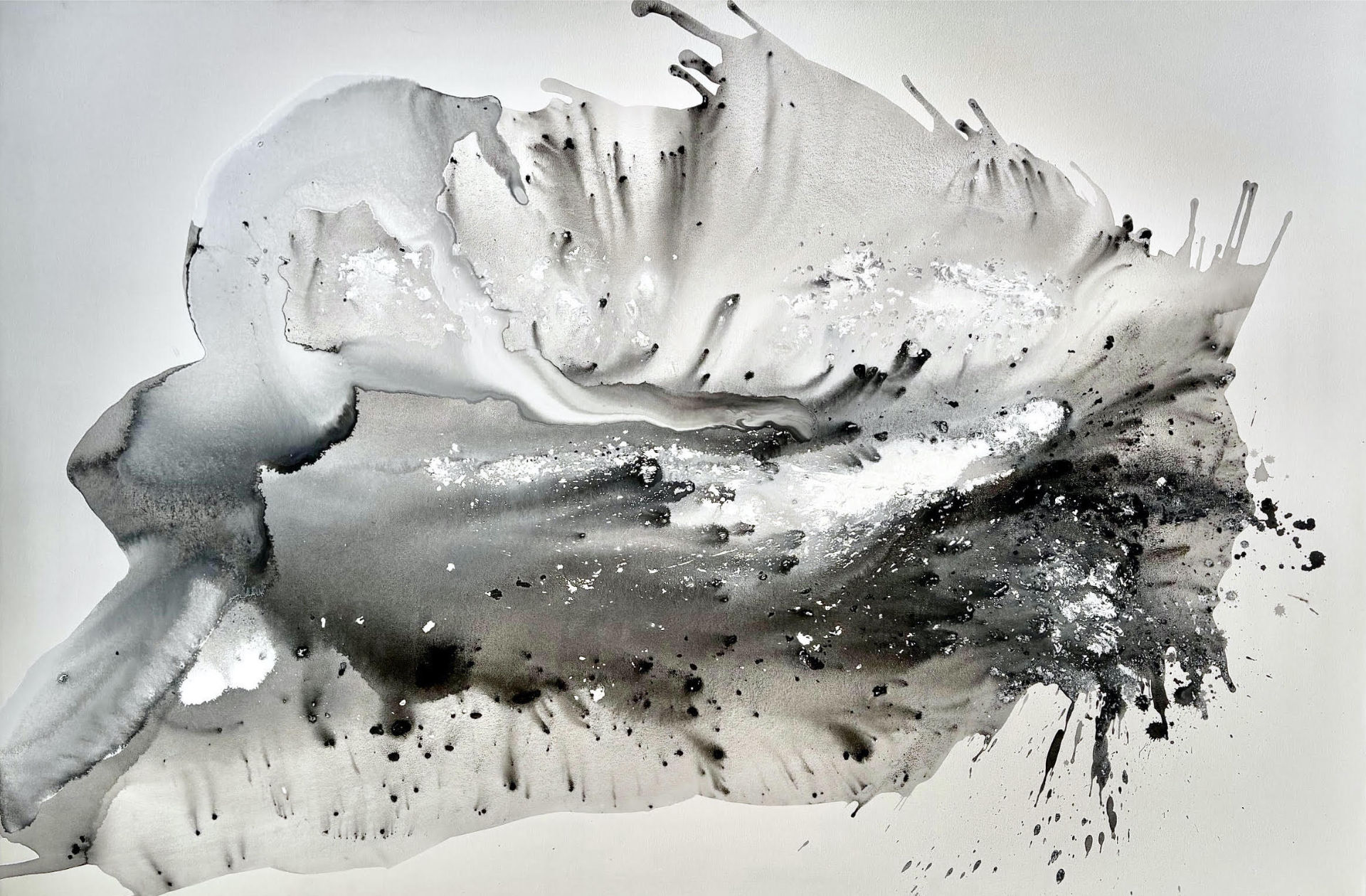 While the palette is monochromatic to fit the Beth Urdang exhibit, the title suggests a hidden spectrum of light. It reminds the viewer that black is not the absence of light, but a vessel for it.